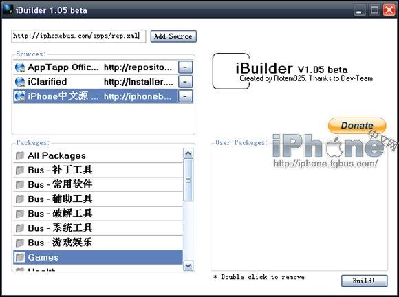 3.在Add Source按鈕前,填寫你想加入的源地址,例如我們的中文源 http://iphonebus.com/apps/rep.xml ,點擊Add Source後,iBuilder會加載該源地址下的所有軟件或者補丁。