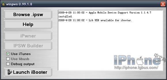 注意事項:WinPwn是Windows操作系統下自制iPhone1.1.4固件的工具,它暫時不能實現2.0固件的自制功能。在使用WinPwn之前,你需要安裝.Net 2.0 Framework以及一個需要放在iTunes安裝目錄下的dll文件(下載文件中已經包含dll文件)。