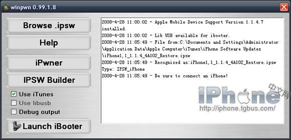 由於WinPwn僅針對iPhone1.1.4固件,所以如果你的iPhone不是1.1.4固件的話,請勿用,或者下載1.1.4固件通過iTunes升級至1.1.4固件。