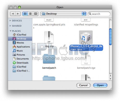 如果你還沒有.ipsw固件文件,請先下載1.1.4: iPhone1,1_1.1.4_4A102_Restore.ipsw。 分流下載1.1.4固件下載地址