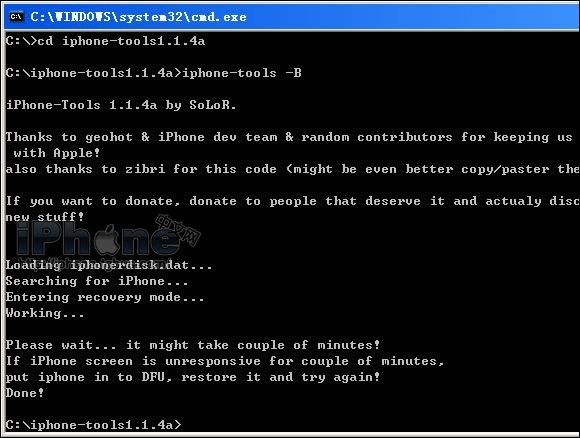 當你輸入完上面的最後一條命令的時候,iPlus將會自動開始幫你升級成為原生的Bootloader 4.6,整個過程大約30秒種左右完成。