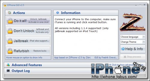 執行文件夾內的ziphoneGUI.exe 程序,出現下面界面。