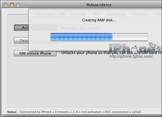 3.現在請下載並開啟iNdependence,你將會看到如下截圖。那麼現在請點擊“Activate Phone”按鈕激活iPhone,你將會看到激活iPhone的整個進程條。