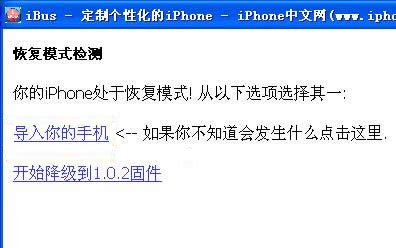 5. 而現在你的iPhone應該還在恢復模式下,要回到正常狀態,需要用iBus跳出,如果你一直開著iBus關閉再打開它,點擊“導入你的手機”