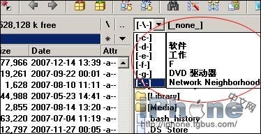 b.在軟件上方有兩個選擇框,類似於FTP軟件,其中一個可以選擇[-\-],然後下面會刷新一個列表,裡面有iPod touch或iPhone(雙擊進入),另外一邊選擇本地硬盤。