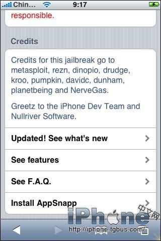 此種方法的優點:操作簡單快速,且無需使用WinSCP、putty、touchfree等軟件,整個破解過程全部基於iPhone上完成。部分步驟截圖可以參考《完美!1.0.2升級1.1.1版iPhone破解教程》