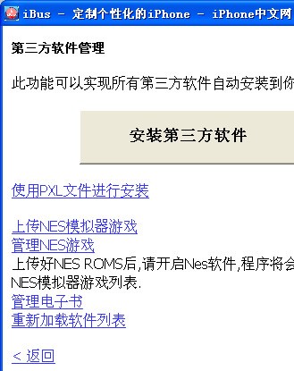 “安裝第三方軟件”:可以自動安裝所有第三方軟件,並擁有上傳電子書、NES游戲等功能。