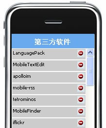 請注意上圖,在“第三方軟件”下面的這個列表就是你iPhone本機裡已經安裝好的第三方軟件。而每個第三方軟件的右邊的“
