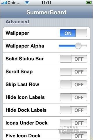 “Solid Status Bar”是信號欄目的背景色,如果選擇ON,狀態欄將會恢復成原有白色背景狀態欄。