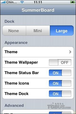 “Theme Dock”是主題的Dock顯示,例如是否選擇透明背景色顯示底部圖標。
