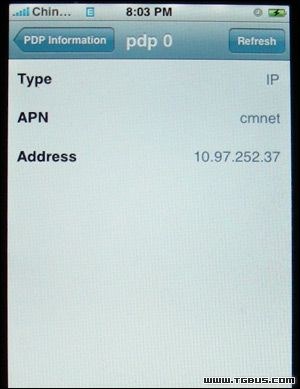 照說移動WAP應該用cmwap,但是我試了多次,都不行,用FieldTest測試時PDP Information是空的。反而是填入cnwap和cmnet就可以用了,而且PDP Information裡列出了使用的APN及獲得的IP地址,難道這就是傳說中的iPhone GPRS?