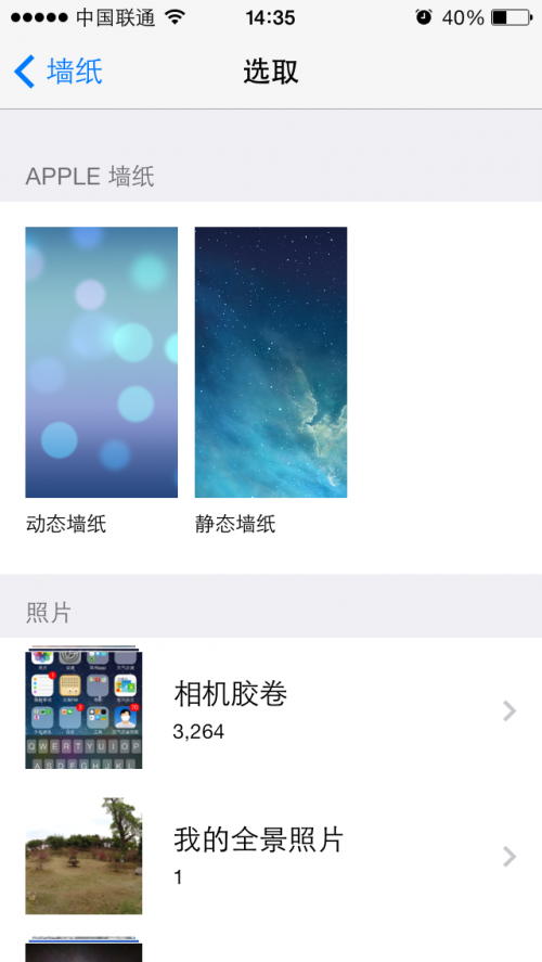 ios7終於可以添加全景的牆紙了,橫形長方圖做牆紙終於不尴尬!還有自帶的動態牆紙可選擇!