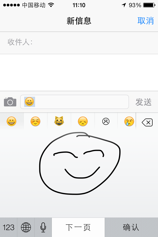 這簡直是ios 7最可愛的變革了!在輸入法寫字板裡面畫圖也能識別出表情圖案,打字變得有趣多了!