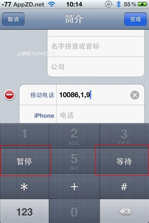 PS:有人會問了,暫停是停頓一下,那等待是干嗎用的?等待和暫停的區別在於等待不會自動輸入,會在通話界面中顯示一個撥打相應號碼的按鈕,點擊才會撥打該號碼。
