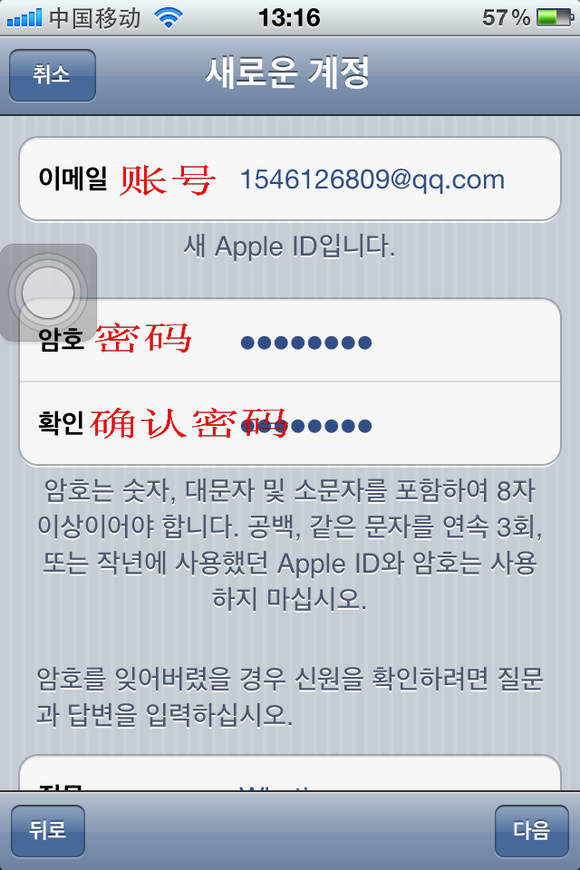 賬號就是以後你登陸韓國APP的賬號了,密碼當然也是你登陸APP的密碼,不用和你的QQ一樣