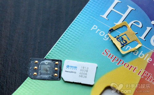 第三步,我們可以拆開包裝,取出裡面的卡貼,小心撕下絕緣保護作用的黃色貼紙,然後將其有六個小觸點的一面與SIM卡金屬面緊貼起來,然後一並放入sim卡槽。由於該卡貼工藝等方面比較先進,面積與sim卡一樣,而厚度基本忽略不計,因此即使放入卡貼,用戶也並不需要更換劣質的sim卡槽,原裝的卡槽無壓力。