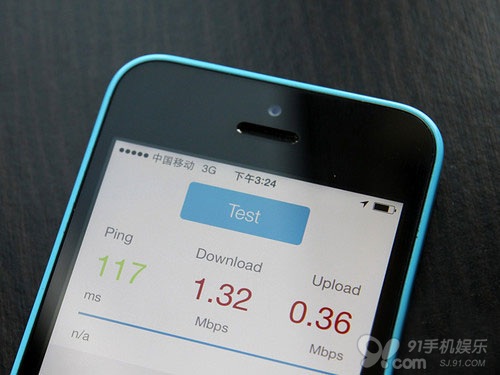 按照卡貼的使用方法,我們順利在港版型號為A1529的iPhone 5c上成功開啟了中國移動的3G網絡。接下來我們首先還是需要測試一下速度,看看實際表現如何。