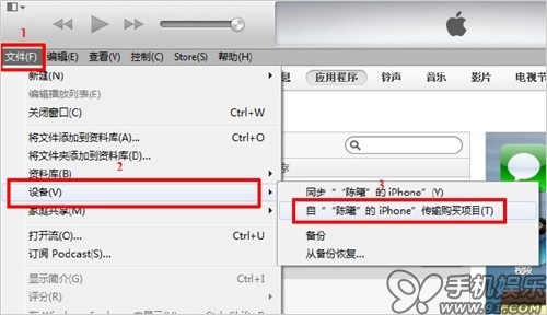 e) 在iTunes上進入-文件-設備-自XX 的iPhone傳輸購買的項目。