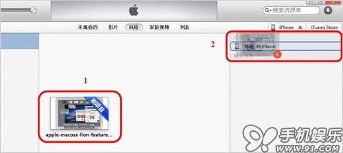 d) 選中影片文件後,直接拖拽至右側邊iOS設備中既可自動同步。