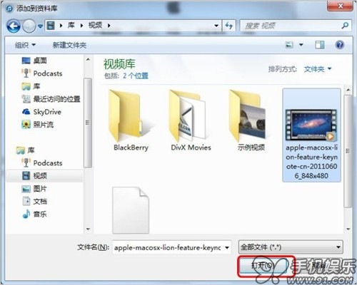 b) 在彈出的對話框中選擇准備好的影片,點擊打開;