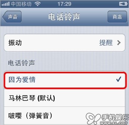 8) iOS設備(iOS 6系統)的設置-聲音-電話鈴聲中可以找到剛才同步進去的鈴聲。