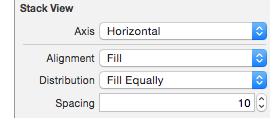 stackView.distribution = UIStackViewDistributionFillEqually;