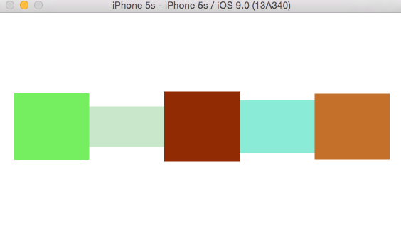 我們向其中拖入任意數量的view,設置不同的顏色,就實現了我們想要的效果,並且可以隨意動態刪除和添加其中的view數量,不需要改變約束。