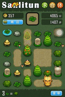 4,物品合成有兩條路線:草→灌木→樹→……→光之塔,和墓碑→小雕像→大雕像→寶箱→大寶箱。點擊寶箱和大寶箱可以獲得貓幣,並使它們從地圖上消失。