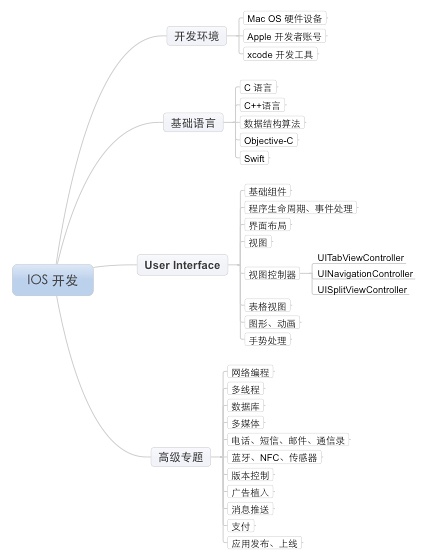 先用一張圖展示學習iOS開發應該掌握的知識體系: