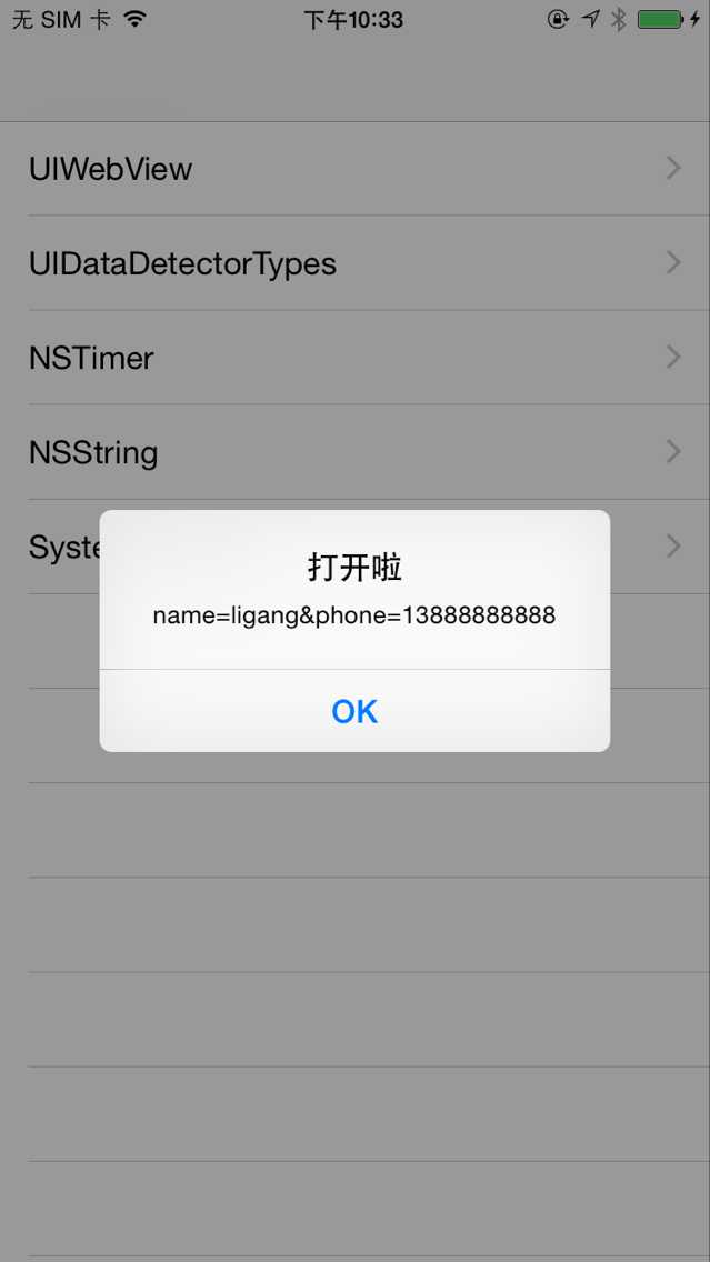 iOSDevTip://?name=ligang&phone=13888888888