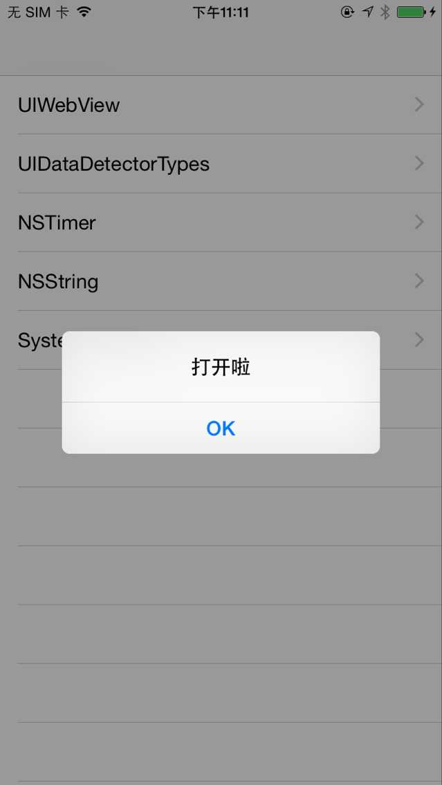 UIAlertView *alertView = [[UIAlertView alloc] initWithTitle:@"打開啦"