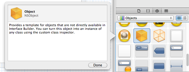 我們的AppDelegate不就剛好是這麼一個東西麼。於是很自然的,選中這個object然後在右側屬性欄將custom class設置成NonoAppDelagate。