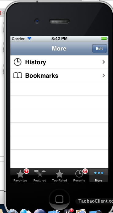 3>tabbarItem中可以設置title ,系統默認的幾種圖標,還有是自定義圖標,以及badgeValue,就是上面標簽上每個紅色的值,
