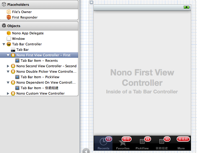 TabBarItem,一般我們會設置對應得XXXcontroller.xib文件