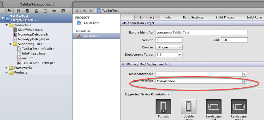 2.建立完後我們自定頂一個MainWindow.xib(當然,這個名字可以隨意取,但是按照規范以及一種默認留下來的習慣),作為應用啟動時加載的首個nib文件,