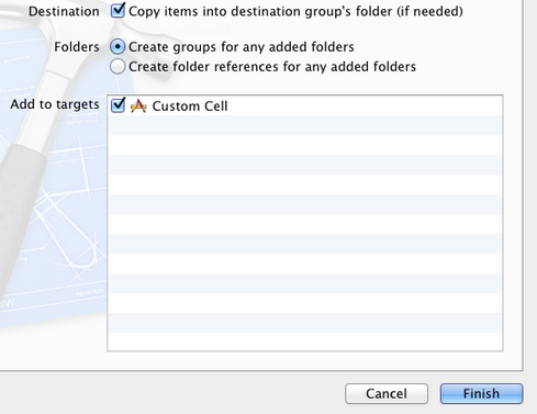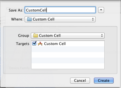 之後選擇Next和Create,就建立了兩個文件:CustomCell.h和CustomCell.m。