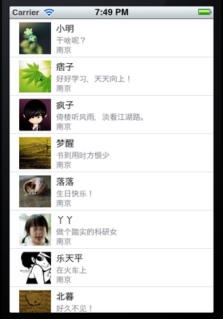 我們這次要自定義一個Cell,使得它像QQ好友列表的一行一樣:左邊是一張圖片,圖片的右邊是三行標簽: