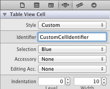 選中Table View Cell,打開Attribute Inspector,將Identifier設置為CustomCellIdentifier: