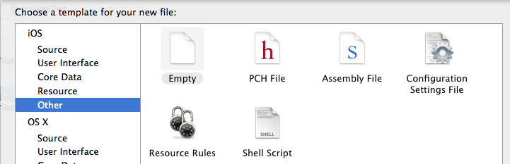 因為用的是XCode6, 上面默認是沒有pch文件的,如果我們想使用pch文件,需要手動添加,添加步驟如下