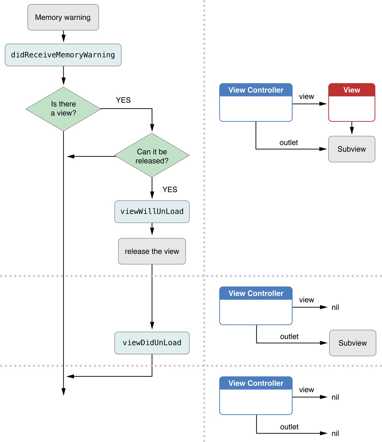內存警告的處理示意圖: