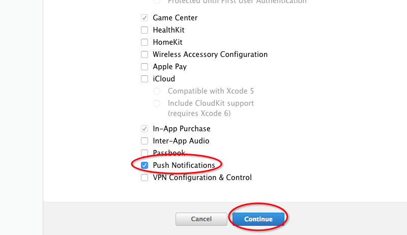 在創建 App ID 的過程中,需要勾選 Push 服務,如下圖: