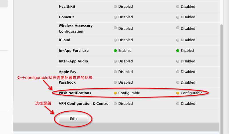 如果你是為已有的 App 增加消息推送功能,那麼打開原有的 App ID,開啟 Push Notification 選項即可。流程跟上面的一樣。