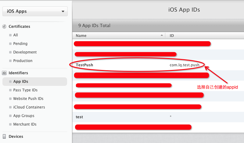 *創建APP ID,同一個公司可能會使用類似於 com.example.* 這樣通用的 App ID,但是如果要在 App 中加入消息推送功能,那麼是不能使用通用 ID 的,需要為之單獨創建一個。