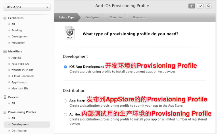 3.選擇蘋果的圖標,開發用就選擇開發狀態,上線就可以選擇生產狀態