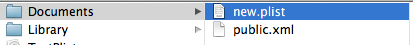 下面拷貝一個public.xml文件至document路徑下,也可拷貝其他文件,只需將文件名和類型對應即可,尤其是database文件,一定要拷貝至沙盒才能使用。此文件不能是電腦中的文件,必須加入工程的Bundle中