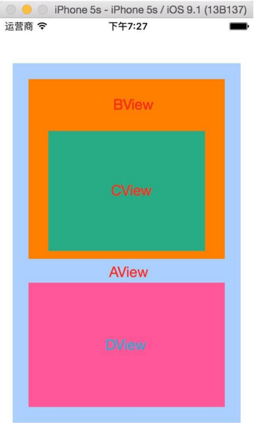 在新建的項目中,我分別創建了AView、BView、CView和DView四個UIView的子類,然後點擊任意一個位置: