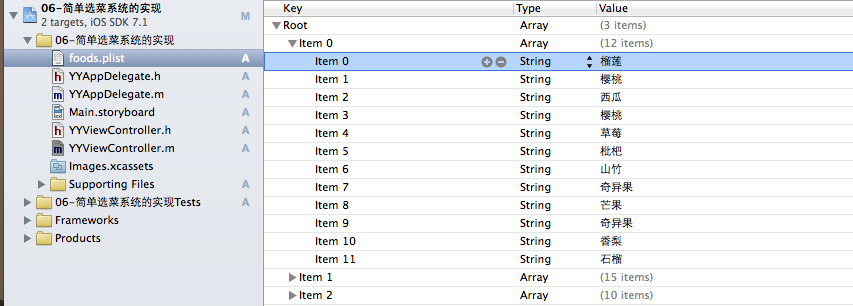 6)缺點,將來數據改變之後,會報錯(模於幾)[self.foods[0] count]?為什麼不用簡寫 點語法?(切記要記住)