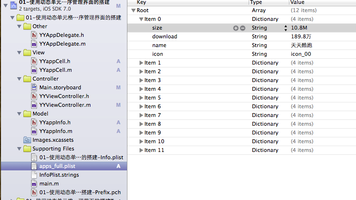 (2)稍微靈活一些的,可以把plist文件一懶加載的方式,加載到程序中,動態獲取。但是觀察界面結構,很容易看出這樣需要進行模型嵌套,很麻煩。