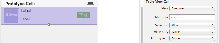 說明:在storyboard中直接使用其自帶的動態單元格完成tableviewcell的定義,並創建了一個管理該cell的類,進行了連線。