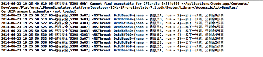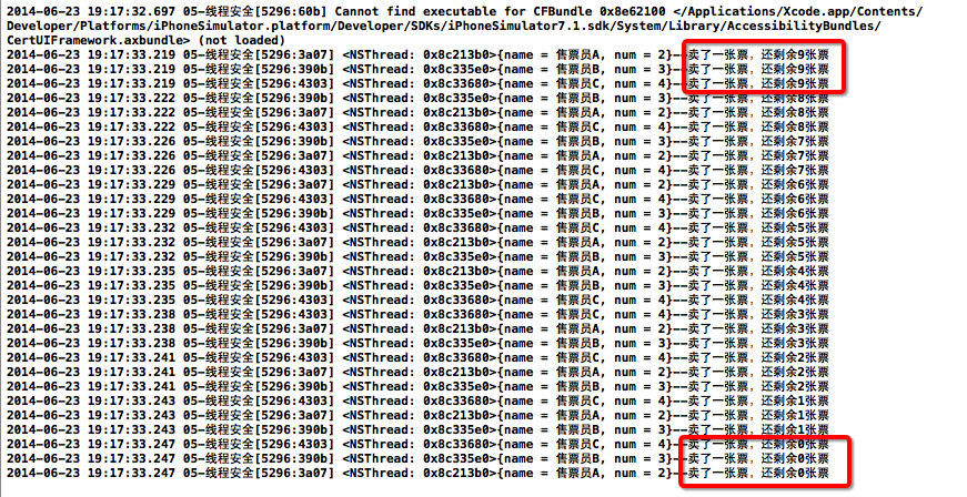 NSLog(@"%@--賣了一張票,還剩余%d張票",current,self.leftTicketsCount);